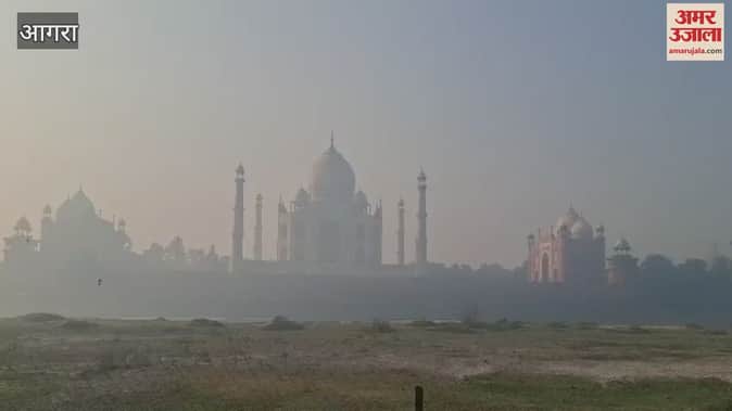 VIDEO : प्रदूषण बढ़ने से धुंध में छिपी ताजमहल की खूबसूरती, खतरनाक हुई हवा