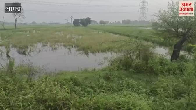 आगरा के कागारौल में सोमवार को अचानक हुई बारिश ने किसानों की मुश्किल और बढ़ा दी है। क्षेत्र के कई गांव के खेतों में पानी भर गया है। खेतों में खड़ी बाजरा, ज्वार और धान की फसलें बारिश का पानी भरने से खराब होने लगी हैं। किसानों का कहना है कि पहले ही अत्यधिक बारिश व ओलावृष्टि से फसलें बर्बाद हो चुकी हैं। अब बिन मौसम बारिश के फसलों पर संकट के बादल मंडरा रहे हैं।