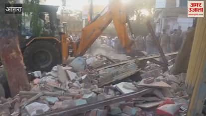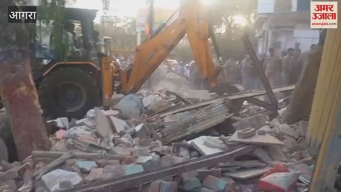 आगरा में मकान और दुकान धराशायी हो गए। इसके मलबे में कई लोगों के दबे होने की आशंका है। माैके पर बड़ी संख्या में पुलिस राहत बचाव कार्य में लगी है। कुछ लोगों को मलबे से बाहर निकाला जा चुका है।