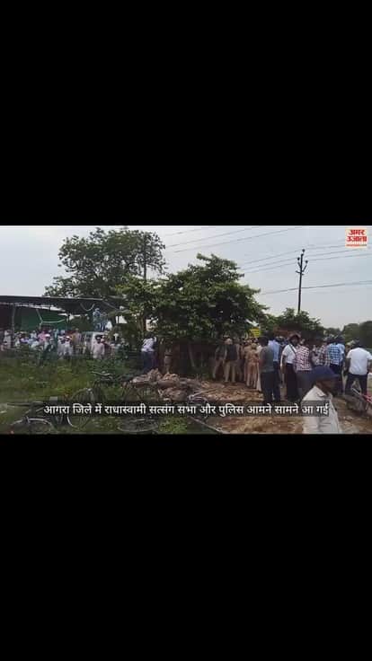 उत्तर प्रदेश के आगरा जिले में राधास्वामी सत्संग सभा और पुलिस आमने सामने आ गई। सत्संगियों की भीड़ इस कदर टूटी की पुलिस के पसीने छूट गए। सत्संगियों ने पुलिस पर पथराव शुरू किया तो पुलिसकर्मियों के पैर उखड़ गए।