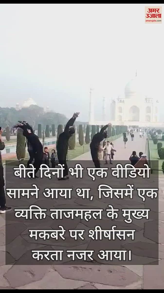 VIDEO : ताज पर फिर उड़ी नियमों की धज्जियां, युवतियों ने किया योग; वीडियो हुआ वायरल