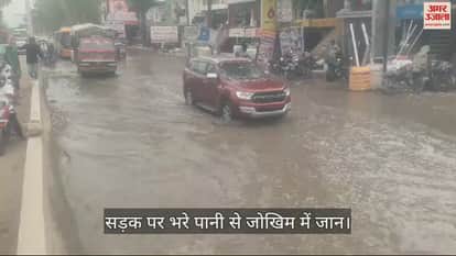 VIDEO : ताजनगरी में सड़क पर भरे पानी से जोखिम में जान, पलटा सवारियों से भरा ई-रिक्शा