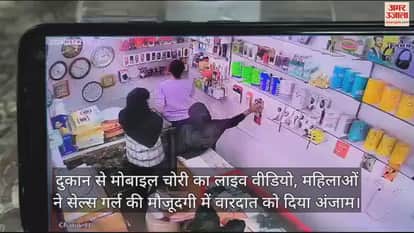 VIDEO : दुकान से मोबाइल चोरी का लाइव वीडियो, महिलाओं ने सेल्स गर्ल की मौजूदगी में वारदात को दिया अंजाम