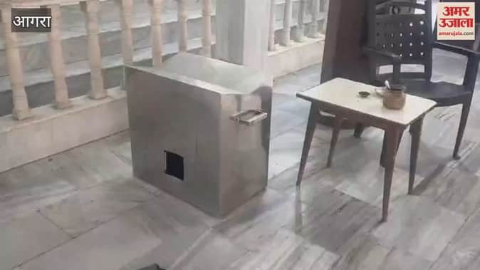 लायर्स कालोनी स्थित राधा कृष्ण मंदिर में मंगलवार रात चोरों ने सेंध लगा दी। पीछे के रास्ते से घुसकर शिवलिंग पर चढ़ा चांदी का तीन किलो से अधिक वजन का छत्र चोर चोरी कर ले गए। चोरों ने एक अलमारी और किचन का ताला तोड़ा और दानपेटी उठाकर पीछे पार्क में ले गए। दानपेटी चार दिन पहले खाली हुई थी, इसीलिए उसमें अधिक धन नहीं था। मंदिर ट्रस्ट के अध्यक्ष तेजपाल मगन और उपाध्यक्ष परेश निझावन मौके पर आए और पुलिस को जानकारी दी। सूचना पर मौके पर थाना न्यू आगरा पुलिस पहुंची और जांच शुरू कर दी। चोरी का पता चलते ही विधायक डॉ धर्मपाल सिंह मौके पर पहुंचे और निरीक्षण किया। विधायक ने कहा कि मामले में पुलिस अधिकारियों से बात कर चोरी का जल्द खुलासा करने को कहा गया है।
