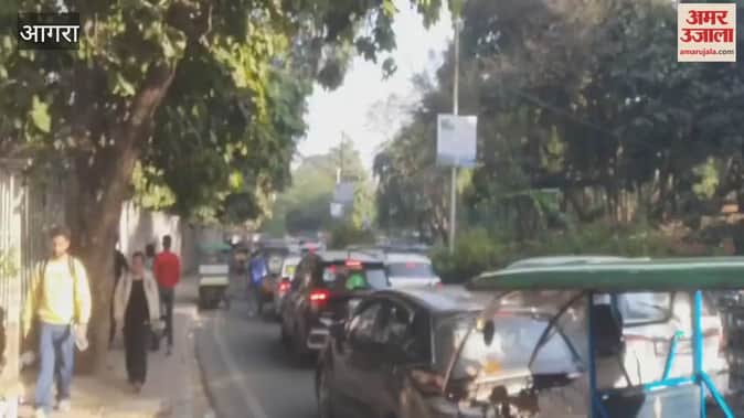 VIDEO: ताजमहल के पास लगा जाम, आधा घंटा फंसे रहे पर्यटकों के वाहन