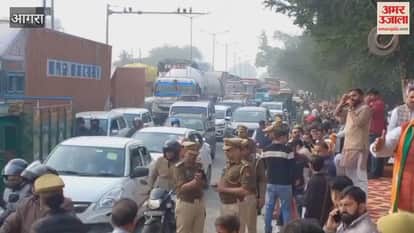 भाजपा के प्रदेश अध्यक्ष पंकज चौधरी के आगरा आगमन पर सिंकदरा चौराहा पर स्वागत के लिए मंच बनाया गया। इस दाैरान हाईवे पर जाम की स्थिति बन गई। वाहनों की लंबी कतार लग गई।
