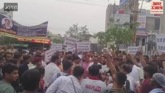 आगरा में शुक्रवार को दिनदहाड़े सर्राफ की गोली मारकर हत्या कर दी गई थी। इसको लेकर उनके परिजन और व्यापारियों ने शनिवार को कैंडिल मार्च निकाला और श्रद्धांजलि अर्पित की। उन्होंने कहा कि अगर 72 घंटे के अंदर आरोपी पकड़े नहीं गए तो व्यापारी सड़क पर उतरेगा और विरोध प्रदर्शन करेगा।