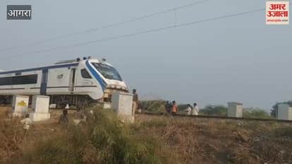 आगरा कैंट-उदयपुर सिटी के बीच चलने वाली वंदे भारत एक्सप्रेस की चपेट में आने से फतेहपुर सीकरी स्टेशन के समीप दो मवेशी कट गए। ट्रेन के इंजन का मडगार्ड भी क्षतिग्रस्त हो गया। इससे घटनास्थल से करीब 500 मीटर आगे जाकर ट्रेन रुक गई। टेक्निकल स्टाफ ने क्षतिग्रस्त मडगार्ड को खोलकर ट्रेन में रखा। इससे ट्रेन करीब 20 मिनट तक खड़ी रही। रेलवे कर्मियों के मुताबिक सोमवार दोपहर लगभग 3:40 बजे 20982 आगरा कैंट से उदयपुर सिटी तक जाने वाली वंदे भारत एक्सप्रेस फतेहपुर सीकरी स्टेशन से निकली। करीब 500 मीटर आगे ही रेलवे ट्रैक पर घूम रहे दो मवेशी ट्रेन की चपेट में आकर कट गए। घटनास्थल से लगभग 500 मीटर आगे जाकर ट्रेन रुकी और उसमें से टेक्निकल स्टाफ ने उतरकर क्षतिग्रस्त हुए मडगार्ड को खोलकर ट्रेन के अंदर रखा। इसके बाद करीब 4:00 बजे ट्रेन आगे को रवाना हो सकी। वहीं, घटना स्थल पर पहुंचे नगर पालिका अध्यक्ष के प्रतिनिधि मोहम्मद इस्लाम ने बुलडोजर मंगाकर ट्रैक से मृत मवेशियों के अवशेषों को गड्ढे में दफन करा दिया।