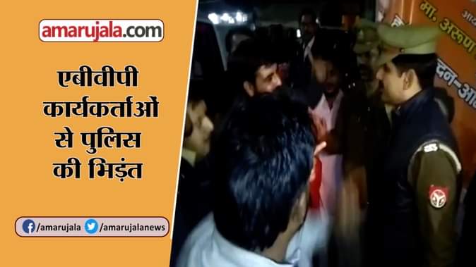अलीगढ़ में सोमवार पुलिस और एबीवीपी के कार्यकर्ताओं के बीच हुआ विवाद हंगामे का रूप ले लिया। इस विवाद में स्थानीय विधायक भी कूद गए। देर रात एबीवीपी के कार्यकर्ताओं की शिकायत पर पुलिस के एक सिपाही को निलंबित कर दिया गया।