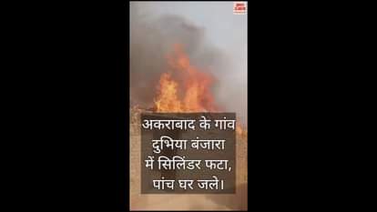 VIDEO : अकराबाद के गांव दुभिया बंजारा में सिलिंडर फटा, पांच घर जले