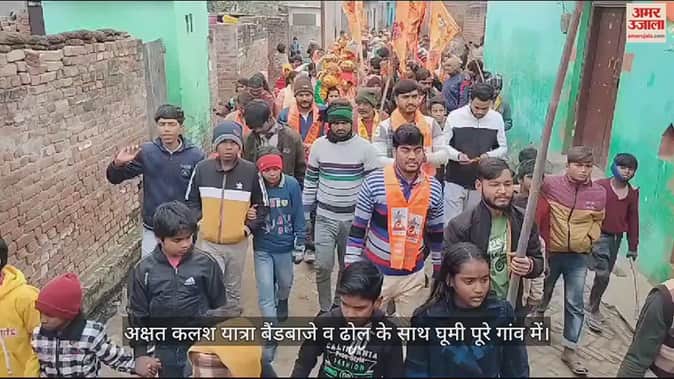 VIDEO : अक्षत कलश यात्रा बैंडबाजे व ढोल के साथ घूमी पूरे गांव में