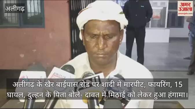 VIDEO : अलीगढ़ के खैर बाईपास रोड पर शादी में मारपीट, फायरिंग, 15 घायल, दुल्हन के पिता बोले- दावत में मिठाई को लेकर हुआ हंगामा
