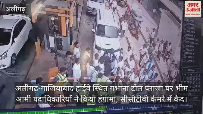 अलीगढ़-गाजियाबाद हाईवे स्थित गभाना टोल प्लाजा पर भीम आर्मी पदाधिकारियों ने किया हंगामा, सीसीटीवी कैमरे में कैद