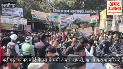 अलीगढ़ जनपद कोर्ट कैंपस में मची अफरा-तफरी, खाली कराया परिसर