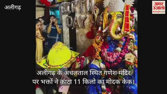 VIDEO : अलीगढ़ के अचलताल स्थित गणेश मंदिर पर भक्तों ने काटा 11 किलो का मोदक केक