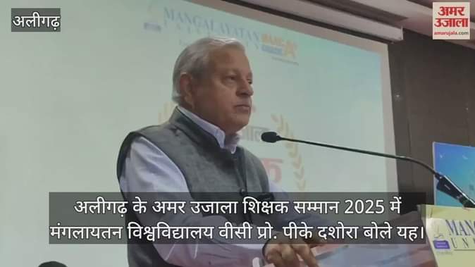 अलीगढ़ के अमर उजाला शिक्षक सम्मान 2025 में मंगलायतन विश्वविद्यालय वीसी प्रो. पीके दशोरा बोले यह