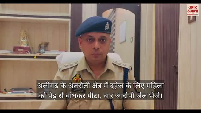 VIDEO : अलीगढ़ के अतरौली क्षेत्र में दहेज के लिए महिला को पेड़ से बांधकर पीटा, चार आरोपी जेल भेजे