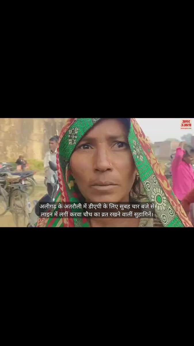 VIDEO : अलीगढ़ के अतरौली में डीएपी के लिए सुबह चार बजे से लाइन में लगीं करवा चौथ का व्रत रखने वालीं सुहागिनें