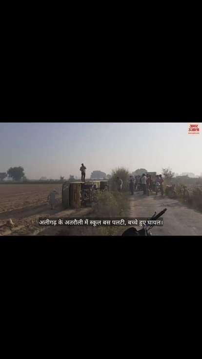 VIDEO : अलीगढ़ के अतरौली में स्कूल बस पलटी, बच्चे हुए घायल