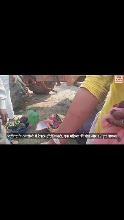 VIDEO : अलीगढ़ के अतरौली में ट्रैक्टर-ट्रॉली पलटी, एक महिला की मौत और 18 हुए घायल