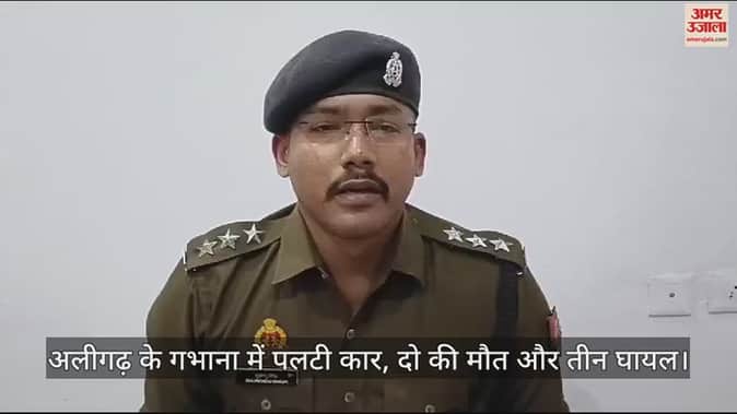 VIDEO : अलीगढ़ के गभाना में पलटी कार, दो की मौत और तीन घायल