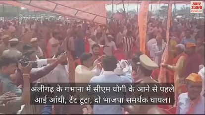 VIDEO : अलीगढ़ के गभाना में सीएम योगी के आने से पहले आई आंधी, टेंट टूटा, दो भाजपा समर्थक घायल