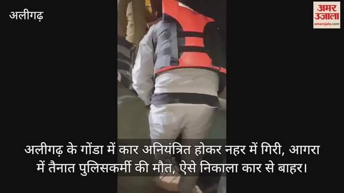 VIDEO : अलीगढ़ के गोंडा में कार अनियंत्रित होकर नहर में गिरी, आगरा में तैनात पुलिसकर्मी की मौत, ऐसे निकाला कार से बाहर