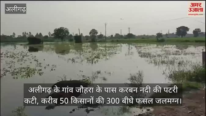 VIDEO : अलीगढ़ के गांव जौहरा के पास करबन नदी की पटरी कटी, करीब 50 किसानों की 300 बीघे फसल जलमग्न