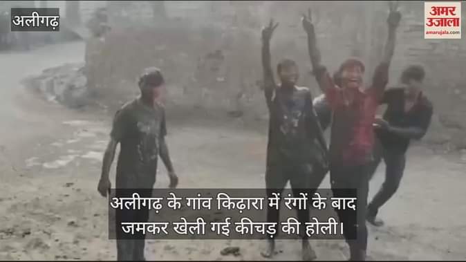 VIDEO : अलीगढ़ के गांव किढ़ारा में रंगों के बाद जमकर खेली गई कीचड़ की होली