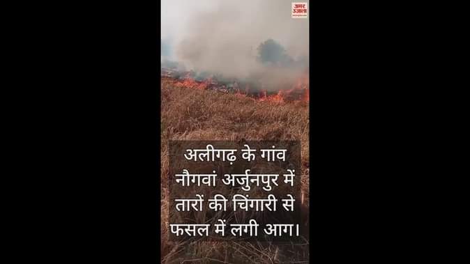 VIDEO : अलीगढ़ के गांव नौगवां अर्जुनपुर में तारों की चिंगारी से फसल में लगी आग
