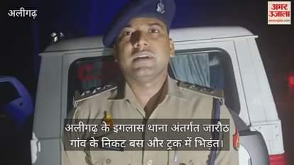 अलीगढ़ के इगलास थाना अंतर्गत जारौठ गांव के निकट बस और ट्रक में भिड़ंत