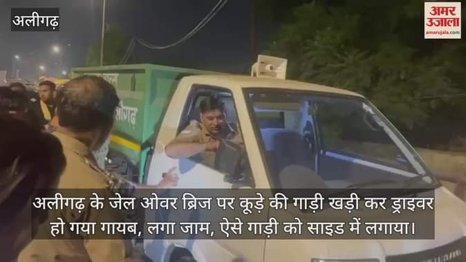 VIDEO : अलीगढ़ के जेल ओवर ब्रिज पर कूड़े की गाड़ी खड़ी कर ड्राइवर हो गया गायब, लगा जाम, ऐसे गाड़ी को साइड में लगाया