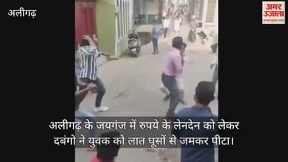 VIDEO : अलीगढ़ के जयगंज में रुपये के लेनदेन को लेकर दबंगो ने युवक को लात घूसों से जमकर पीटा