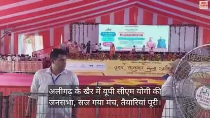 VIDEO : अलीगढ़ के खैर में यूपी सीएम योगी की जनसभा, सज गया मंच, तैयारियां पूरी