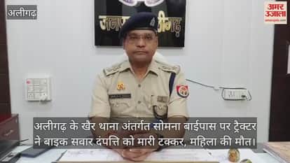अलीगढ़ के खैर थाना अंतर्गत सोमना बाईपास पर 26 मई को ट्रैक्टर ने बाइक सवार दंपत्ति को टक्कर मार दी। टक्कर से महिला की मौत हो गई। परिजनों ने शव रखकर जाम लगाया। ट्रैक्टर को पकड़ लिया गया है। महिला के शव को पोस्टमार्टम के लिए भिजवा दिया है।