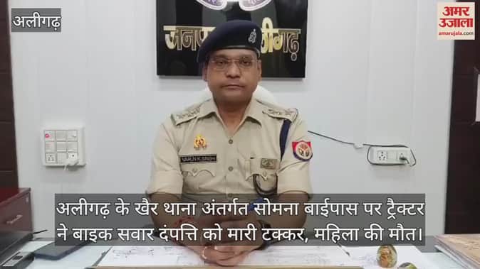 अलीगढ़ के खैर थाना अंतर्गत सोमना बाईपास पर ट्रैक्टर ने बाइक सवार दंपत्ति को मारी टक्कर, महिला की मौत