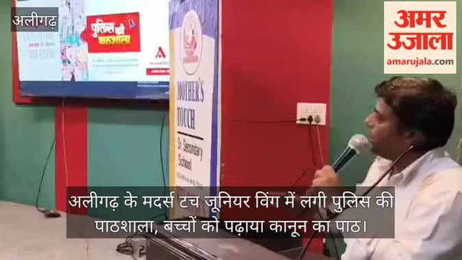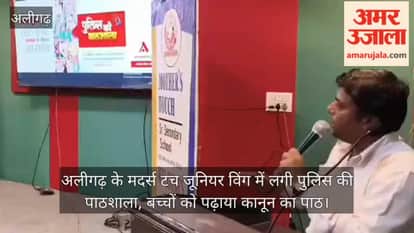 अलीगढ़ के रामघाट रोड स्थित मदर्स टच जूनियर विंग में अमर उजाला पुलिस की पाठशाला कार्यक्रम का आयोजन किया गया। सीओ धनंजय सिंह ने बच्चों को कानून का पाठ पढ़ाया।