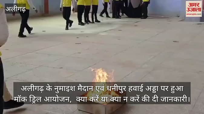 अलीगढ़ के नुमाइश मैदान एवं धनीपुर हवाई अड्डा पर युद्ध अथवा किसी भी आपातकालीन संकट की स्थिति से निपटने के लिए आपदा विशेषज्ञयों सहित मेडिकल टीम, फायर ब्रिगेड, पुलिस विभाग, नागरिक सुरक्षा एवं अन्य विभागों व सम्बंधित संसाधनों के साथ मॉक ड्रिल गया। अग्निशमन विभाग ने मॉक ड्रिल अभ्यास में छात्र-छात्राओं, एनसीसी कैडेडस व नागरिकों को नागरिक सुरक्षा के दृष्टिगत युद्ध, अग्नि जैसे भयावह स्थिति एवं संकट के समय क्या करें या क्या न करें के बारे में जानकारी दी।