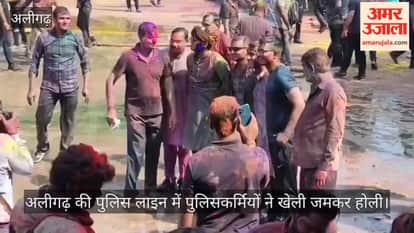 अलीगढ़ की पुलिस लाइन में पुलिसकर्मियों ने खेली जमकर होली