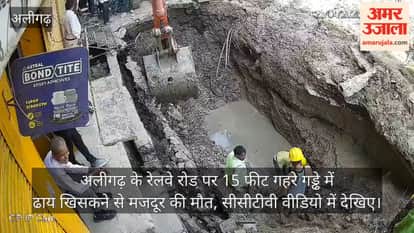 अलीगढ़ के रेलवे रोड पर 15 फीट गहरे गड्ढे में ढाय खिसकने से मजदूर की मौत, सीसीटीवी वीडियो में देखिए