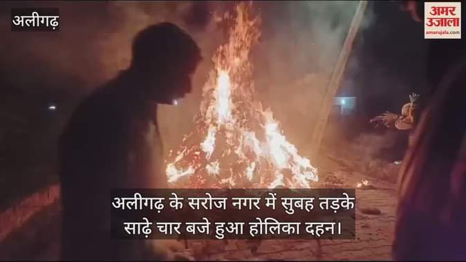 VIDEO : अलीगढ़ के सरोज नगर में सुबह तड़के साढ़े चार बजे हुआ होलिका दहन