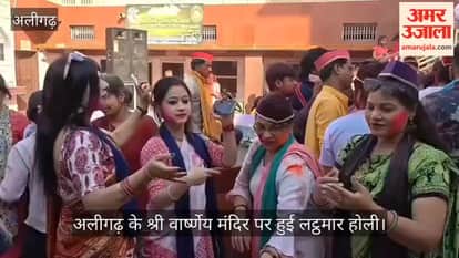 अलीगढ़ के श्री वार्ष्णेय मंदिर पर हुई लट्ठमार होली