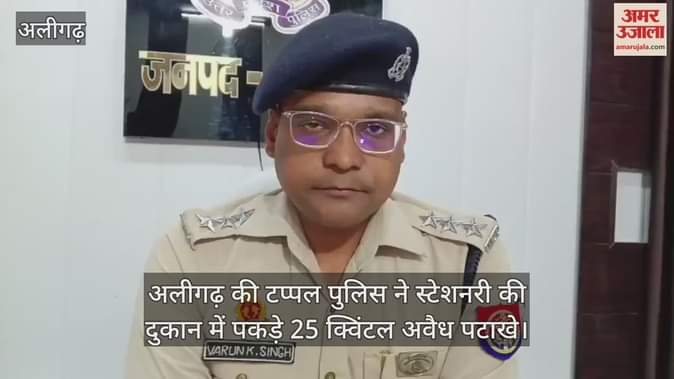 अलीगढ़ की टप्पल पुलिस ने स्टेशनरी की दुकान में पकड़े 25 क्विंटल अवैध पटाखे