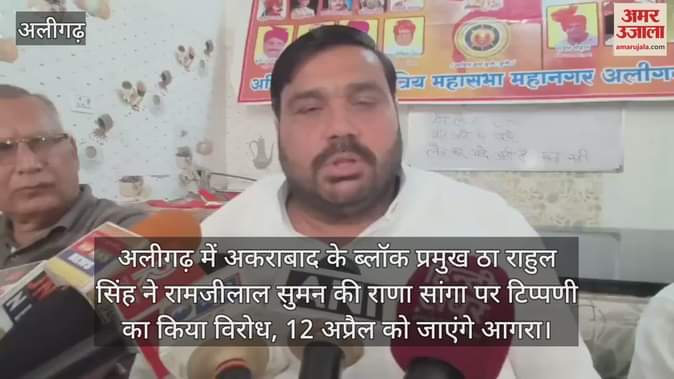 VIDEO : अलीगढ़ में अकराबाद के ब्लॉक प्रमुख ठा राहुल सिंह ने रामजीलाल सुमन की राणा सांगा पर टिप्पणी का किया विरोध, 12 अप्रैल को जाएंगे आगरा