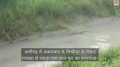 VIDEO : अलीगढ़ में अकराबाद के मिश्रीपुर के निकट रजबहा से पकड़ा गया सात फुट का मगरमच्छ