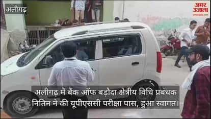 VIDEO : अलीगढ़ मेें बैंक ऑफ बड़ौदा क्षेत्रीय विधि प्रबंधक नितिन ने की यूपीएससी परीक्षा पास, हुआ स्वागत