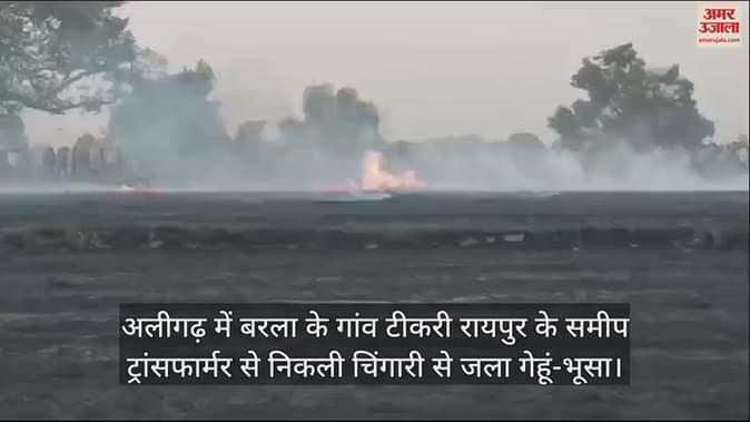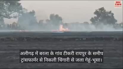 VIDEO : अलीगढ़ में बरला के गांव टीकरी रायपुर के समीप ट्रांसफार्मर से निकली चिंगारी से जला गेहूं-भूसा