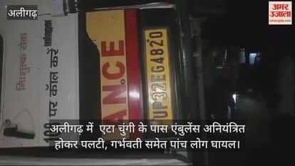 VIDEO : अलीगढ़ में एटा चुंगी के पास एंबुलेंस अनियंत्रित होकर पलटी, गर्भवती समेत पांच लोग घायल