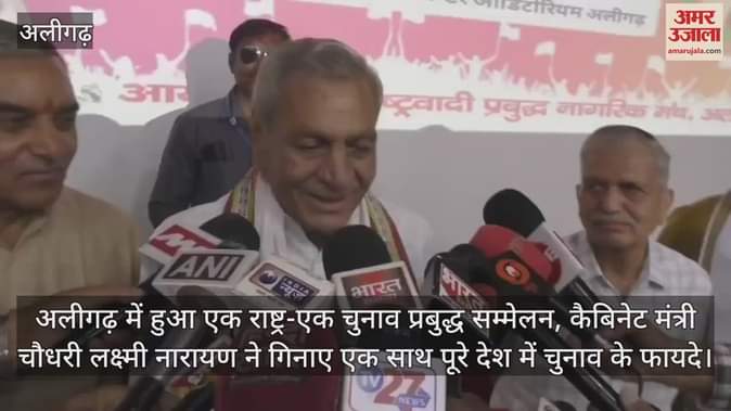 अलीगढ़ के कल्याण हैबिटेट सेंटर में एक राष्ट्र-एक चुनाव पर प्रबुत्द्ध सम्मेलन आयोजित किया गया। जिसमें कैबिनेट मंत्री चौधरी लक्ष्मी नारायण ने शिरकत की। उन्होंने एक साथ पूरे देश में चुनाव के फायदे गिनाए।