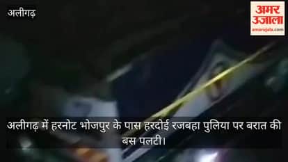 अलीगढ़ में हरनोट भोजपुर के पास हरदोई रजबहा पुलिया पर बरात की बस पलटी